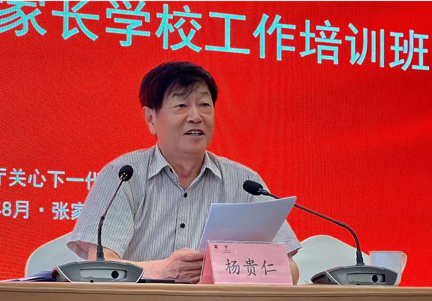 杨贵仁以“深入贯彻落实中办、国办《意见》和教育部党组34号文件,推动新时代教育系统关工委工作高质量发展”为题作首场报告。他充分肯定了河北省教育系统关工委工作,认为组织健全、工作扎实、特色鲜明、亮点突出,特别是家长学校建设为全国各地各校提供了宝贵经验。他认为,此次培训对于推动中办、国办《意见》和教育部党组34号文件落实,推动全省教育系统关工委工作高质量发展具有重要作用。他简要介绍了关工委发展历程,从对关工委工作重要性的认识、新时代关工委的主要任务、怎样搞好关工委建设以及新时代基层教育系统关工委的工作重点等方面做了全面讲解,并提出具体要求。