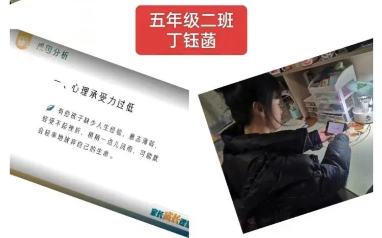 为了帮助孩子树立正确的生命观,了解生命、感受生命、珍爱生命,能够积极地面对生命中所遭遇的种种挑战,1月2日晚,五年级家长们一起学习家长学校第四课——《教育孩子珍爱生命》。